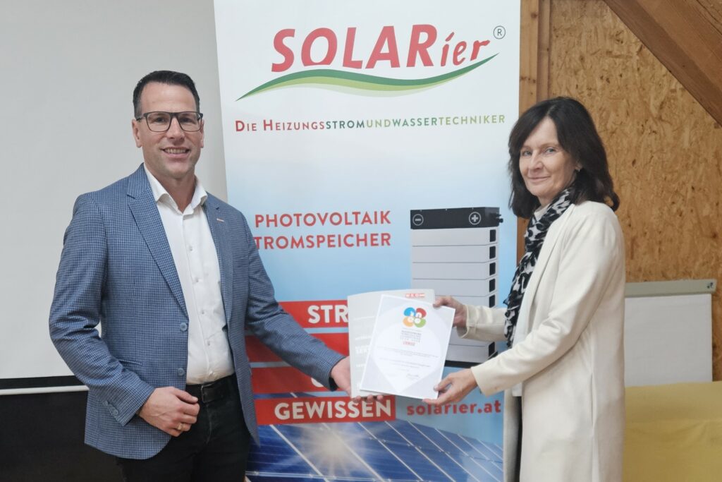Die SOLARier Gesellschaft für erneuerbare Energie mbH wurde erneut von der WKO Urfahr-Umgebung als vorbildlicher Lehrbetrieb ausgezeichnet. Die Rezertifizierung bestätigt unser kontinuierliches Engagement in der Lehrlingsausbildung und in der Entwicklung zukünftiger Fachkräfte im Bereich Photovoltaik und erneuerbare Energie. Wir freuen uns über diese Anerkennung und danken unserem Team und unseren Lehrlingen für ihren Einsatz. Eine qualitätsvolle Ausbildung im Bereich Solarenergie bleibt ein zentraler Teil unserer Arbeit […]